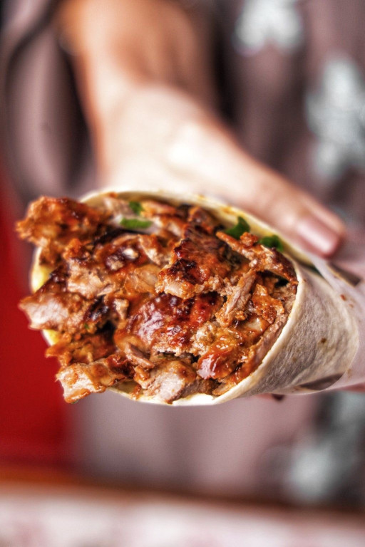 Csemegeuborka , gyros hús 12 dkg, Gyros Szósz, Káposzta, Lilahagyma, Paradicsom